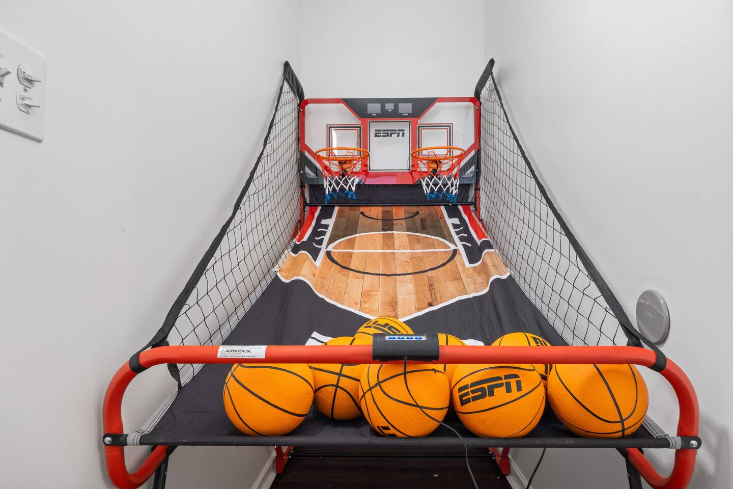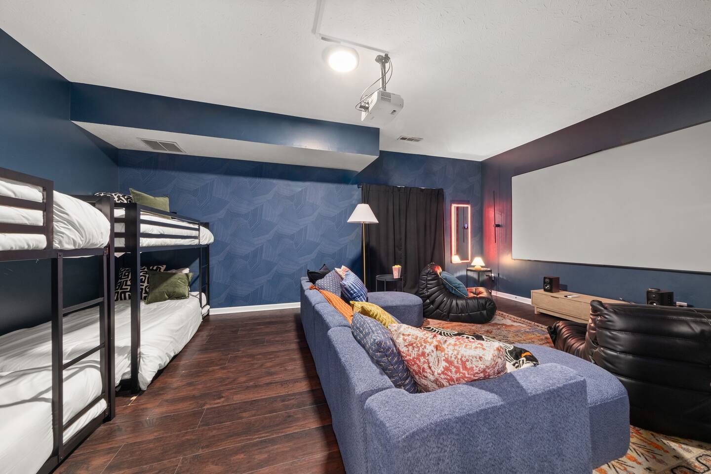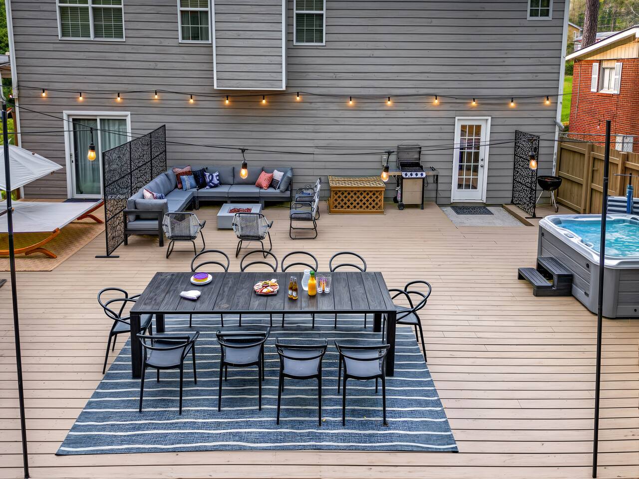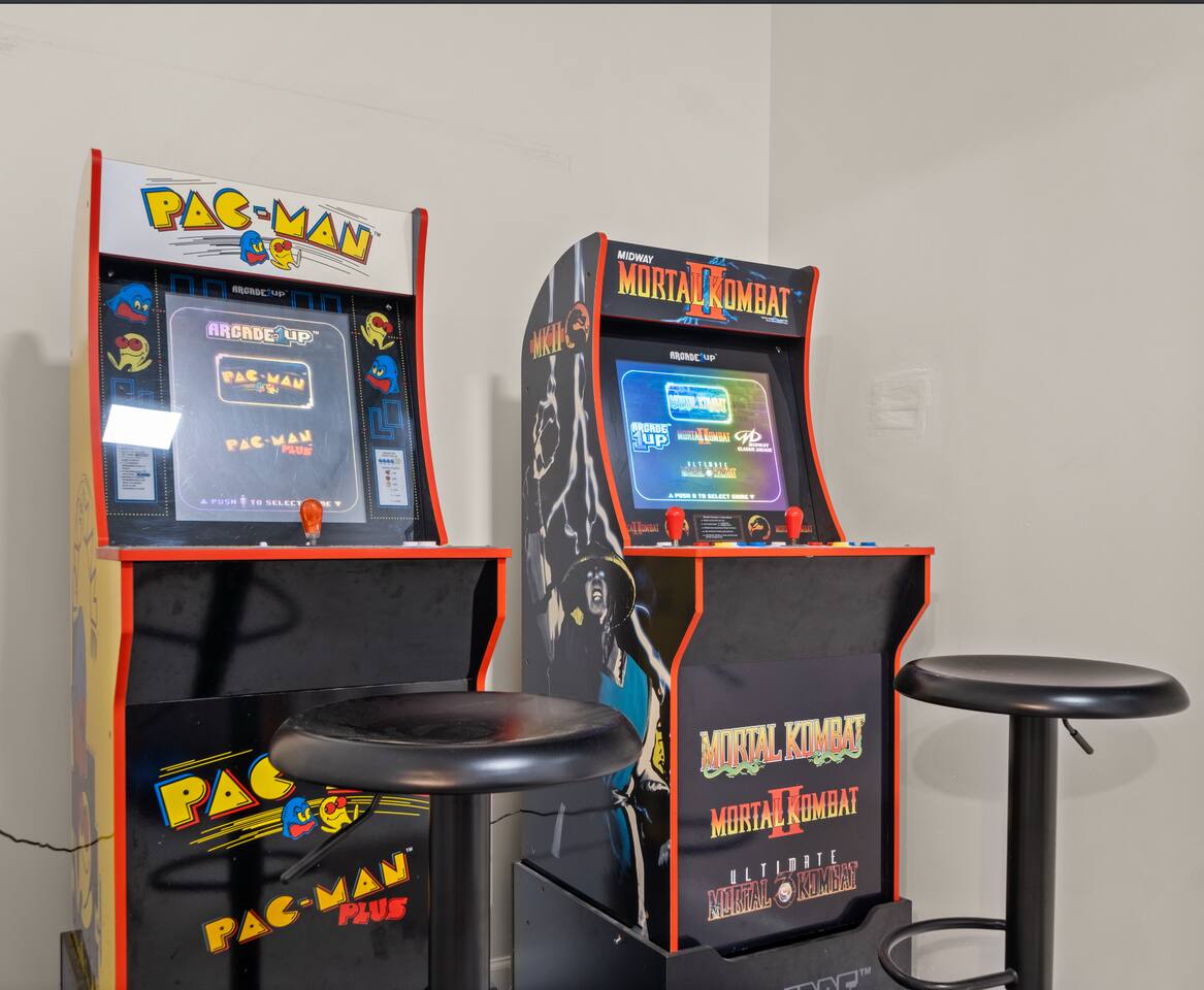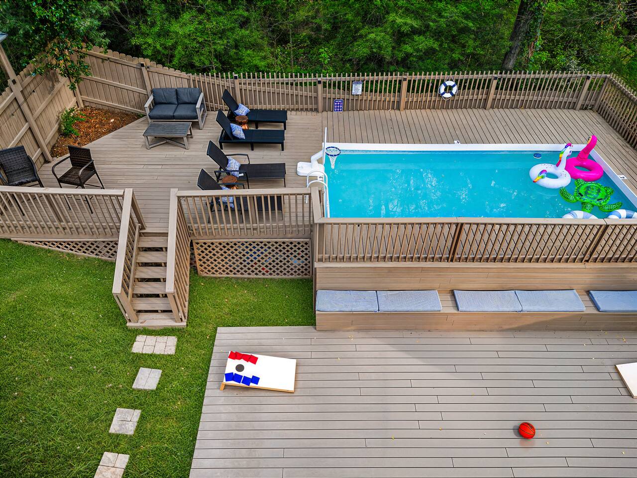 Rental Agreement and Pool & Spa Liability Waiver are required at this property. Bedrooms The home provides 5 Bedrooms and 3 bathrooms across two levels: ~Upstairs~ BR1: King Bed + Master Bathroom + TV BR2: Queen Bed + TV BR3: Queen Bed + TV 1 Shared Bathroom ~Downstairs~ BR4: Queen Bed + TV BR5: (2) Twin Bunks (4 beds total) 1 Shared Bathroom Huge Outdoor Patio • Basketball Court • Pool (4ft deep) w/ Basketball and Floaties • Hot Tub seating for 5 Guests • Luxury Day Bed • Hammock • Dining Table seating for 10 Guests • Patio Sofa/Chairs accommodating 12+ Guests • Gas Fire Pit • Stainless Steel 4-Burner Gas Grill • Double Barrel Smoker • Outdoor Games (Cornhole, Giant Jenga, Connect 4) Home Theater & Game Room • 120" Projector Screen • Edifier 2.1 Sound System • Comfortable Lounge Chairs • Popcorn Machine • Pool Table / Ping Pong Table • Shuffleboard Table • Foosball Table • ESPN Basketball Arcade • 65" TV • Arcade Games: Pacman • Hand Painted Custom Mural *** Brand new AC Unit added Oct 2024*** Centrally located to all things Atlanta: • Hartsfield Jackson Int. Airport: 20 Min • Mercedes Benz Stadium: 12 Min • Truist Park: 20 Min • World of Coca-Cola: 15 Min • Atlanta Aquarium: 15 Min • Centennial Olympic Park: 12 Min • Atlanta Zoo: 16 Min • Six Flags over Georgia: 9 Min • GA Tech: 16 Min • Ponce City Market: 20 Min • Buckhead: 22 Min *** Large Events & Parties are PROHIBITED. As per Airbnb's policies; if an event or party is detected, guests will be asked to vacate the property via local law enforcement. *** If you are hosting a small gathering or a birthday party, please feel free to reach out and we can talk about it. The "ATL Patio Paradise" is a 2000+ sqft single family home with an enormous 1000+ sqft, two level private, fenced outdoor patio. With 5 bedrooms and 3 bathrooms, this spacious house can comfortably accommodate up to 12 guests. Living Room Step into this beautiful space adorned with a warm ATL sign, casting a soft glow against lush greenery, creating an inviting ambiance that's both chic and welcoming. Sink into the comfort of our oversized sectional, perfect for lounging and relaxation after a day of play. Immerse yourself in entertainment with a 65" Smart TV, offering endless streaming options for your viewing pleasure. Kitchen & Dining From the living room walk into a fully equipped kitchen with a brand new pot & pan set, indoor and outdoor dinnerware, kid-friendly dinnerware and cutlery, complimentary coffee, spices and condiments. Enjoy a family meal at the picnic style dining table and play a fun game of checkers or tic-tac-toe on the interactive wall-art. Additionally a high chair is available for use located in the pantry. Bedrooms There are 3 bedrooms located on the main floor. The master bedroom boasts a king-sized canopy bed, 65" TV with an Amazon fire stick and dimmable lights allowing you to set the perfect ambiance for relaxation or productivity. A sleek vanity desk awaits, ideal for your morning routine or evening pampering sessions. Enjoy the en-suite bathroom where you'll find both a shower and lounging tub along with double vanity sinks. Whether you're unwinding after a long day or preparing for a new one, this master bedroom offers everything you need for your stay. Two additional bedrooms located on the main floor offer a luxurious queen bed with ample storage for clothing between the dressers and closets as well as Amazon fire stick enabled TV's for your viewing pleasure. Right outside these bedrooms you can find a shared full bath. On the lower level there is an additional luxurious queen bedroom with ample storage. Down the hall is a large, newly renovated shared full bathroom. Home Theater Room Welcome to our ultimate home theater experience! Immerse yourself in the action on our massive 120" projector screen, paired with a 2.1 sound system that delivers crystal-clear audio, bringing movies to life like never before. Indulge in the classic cinema experience with our vintage popcorn machine and set the mood with dimmable sconce lighting and black out curtains. Sink into the plush comfort of our lounge seats while you enjoy your favorite streaming service or connect your favorite device to the provided HMDI. Located in the theater room are two twin bunk beds for a total of 4 available beds. Game Room Welcome to our epic game room, where play knows no bounds! Challenge your friends to a game of pool on our versatile table that converts to ping pong for added excitement. Test your skills on our shuffleboard table or enjoy classic arcade nostalgia with Pac-Man or our ESPN basketball Pop-a-Shot. Sit back and catch the latest game or enjoy gaming sessions on our Amazon Fire Stick enabled TV, ensuring non-stop entertainment. Note: The game room is not connected to the house HVAC and get a little chilly in the winter. Be sure to snap a photo in front of the vibrant custom mural hand painted by East Coast muralist Liza S, transforming the space into a truly unique experience. (ig: liza_s_art) Outdoor Patio Welcome to this sprawling outdoor oasis, spanning over 1000 square feet of entertainment! Decompress in the soothing waters of our 5-seat hot tub, complete with jets and lights, offering a tranquil retreat under the starlit sky. Gather around the oversized outdoor sectional and plush seating arrangement, basking in the warmth of the gas fire pit, perfect for cozy evenings with friends and family. For the culinary enthusiasts, enjoy our brand new stainless steel grill and double barrel smoker. Challenge your friends and family to a game of basketball on our court or cool off in the refreshing pool (4ft), equipped with basketball hoops and floaties for added fun. Unwind in style on our luxury day bed or sway gently in the hammock, embracing the serenity of outdoor living. Share meals and laughter at the dining table, generously accommodating up to 10 guests, while the aroma of smoked delicacie