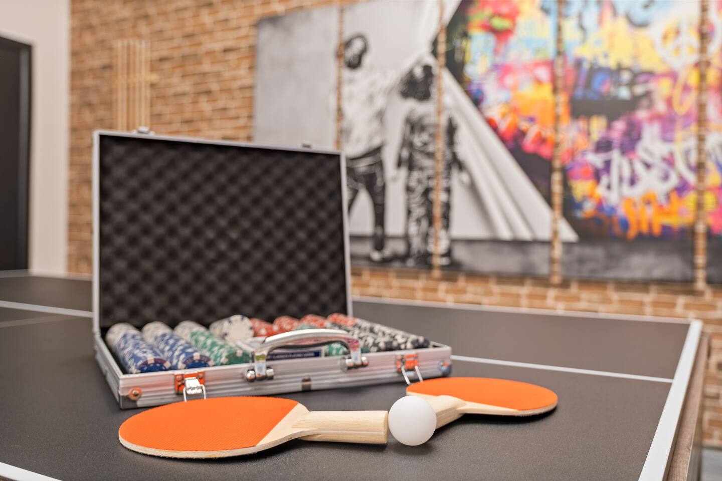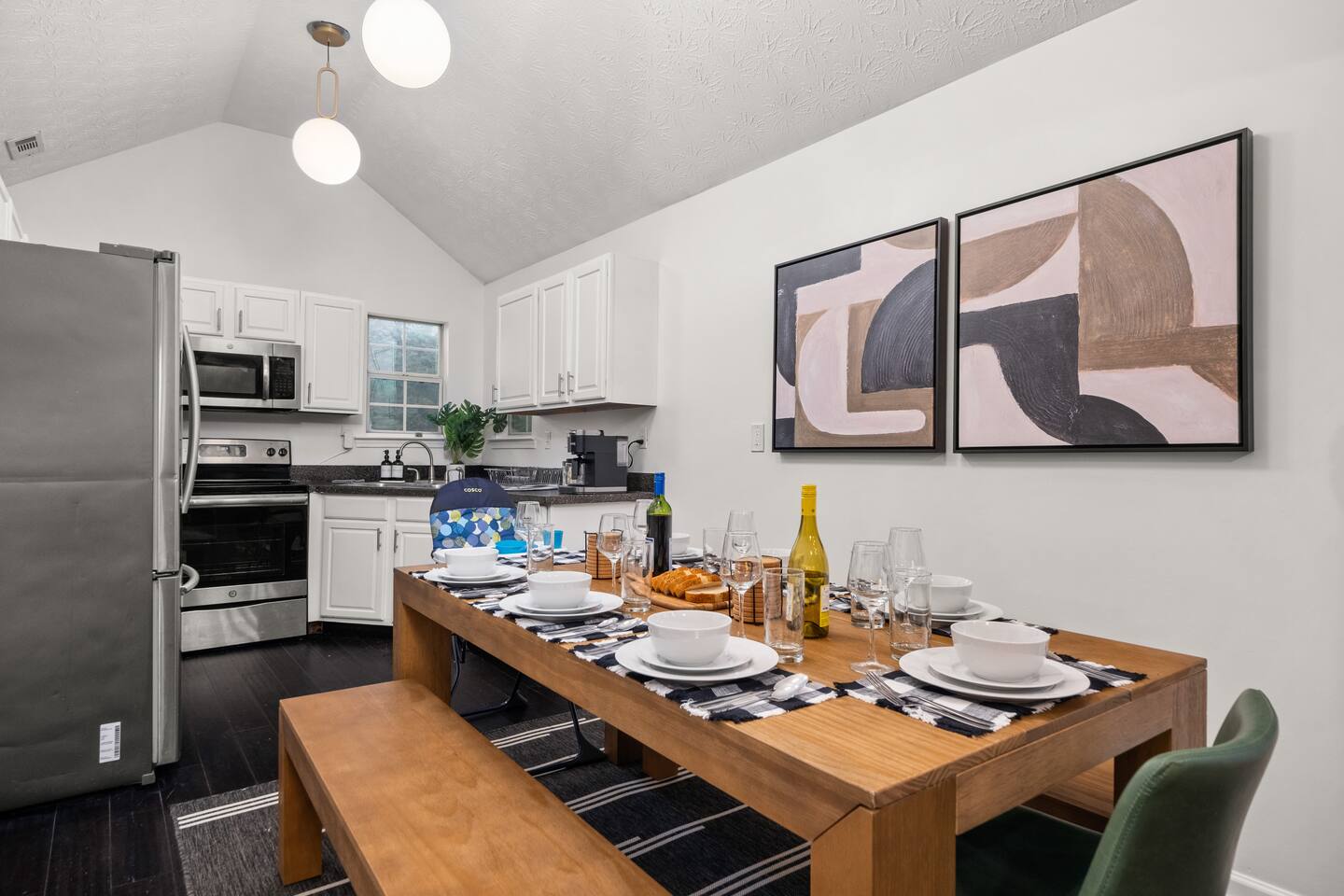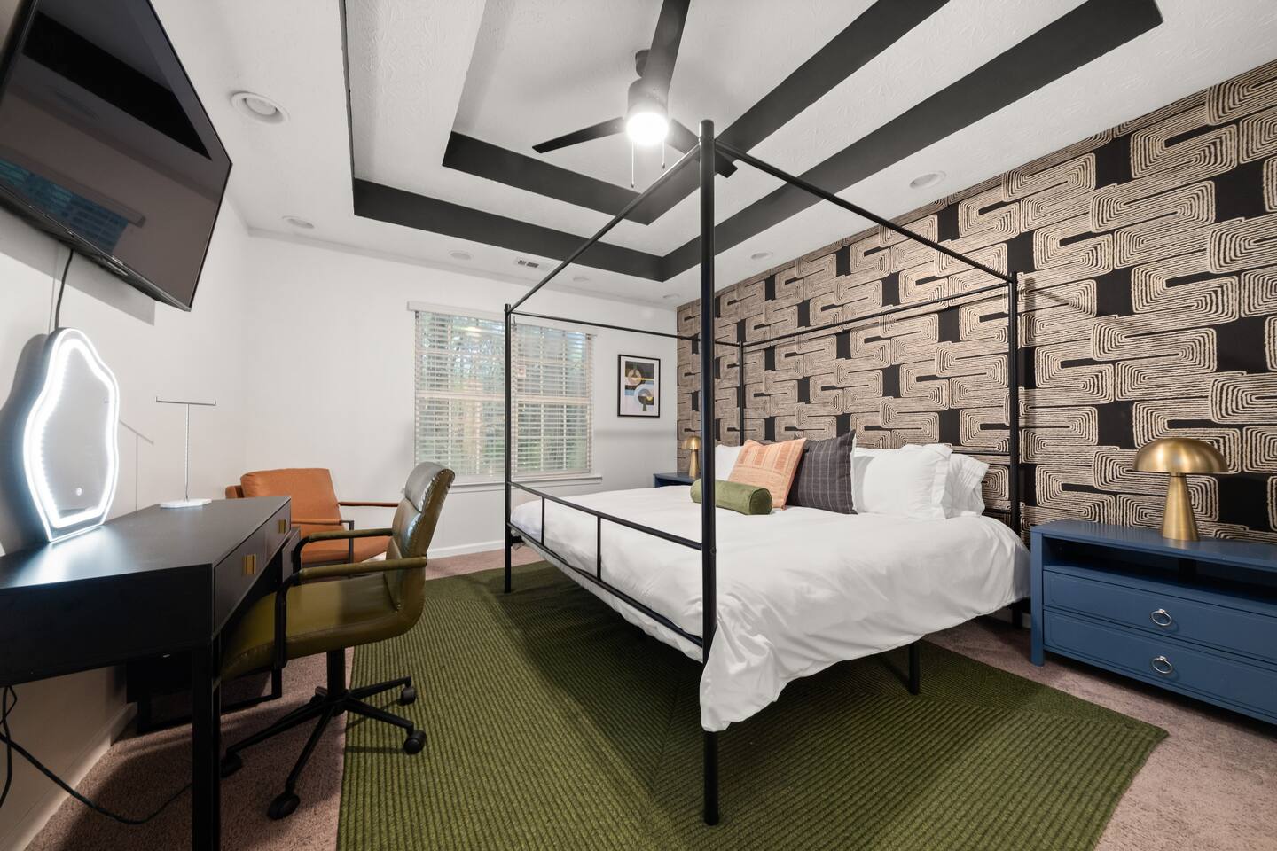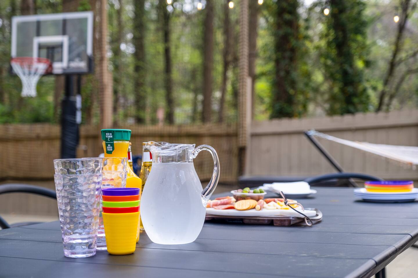 Rental Agreement and Pool & Spa Liability Waiver are required at this property. Bedrooms The home provides 5 Bedrooms and 3 bathrooms across two levels: ~Upstairs~ BR1: King Bed + Master Bathroom + TV BR2: Queen Bed + TV BR3: Queen Bed + TV 1 Shared Bathroom ~Downstairs~ BR4: Queen Bed + TV BR5: (2) Twin Bunks (4 beds total) 1 Shared Bathroom Huge Outdoor Patio • Basketball Court • Pool (4ft deep) w/ Basketball and Floaties • Hot Tub seating for 5 Guests • Luxury Day Bed • Hammock • Dining Table seating for 10 Guests • Patio Sofa/Chairs accommodating 12+ Guests • Gas Fire Pit • Stainless Steel 4-Burner Gas Grill • Double Barrel Smoker • Outdoor Games (Cornhole, Giant Jenga, Connect 4) Home Theater & Game Room • 120" Projector Screen • Edifier 2.1 Sound System • Comfortable Lounge Chairs • Popcorn Machine • Pool Table / Ping Pong Table • Shuffleboard Table • Foosball Table • ESPN Basketball Arcade • 65" TV • Arcade Games: Pacman • Hand Painted Custom Mural *** Brand new AC Unit added Oct 2024*** Centrally located to all things Atlanta: • Hartsfield Jackson Int. Airport: 20 Min • Mercedes Benz Stadium: 12 Min • Truist Park: 20 Min • World of Coca-Cola: 15 Min • Atlanta Aquarium: 15 Min • Centennial Olympic Park: 12 Min • Atlanta Zoo: 16 Min • Six Flags over Georgia: 9 Min • GA Tech: 16 Min • Ponce City Market: 20 Min • Buckhead: 22 Min *** Large Events & Parties are PROHIBITED. As per Airbnb's policies; if an event or party is detected, guests will be asked to vacate the property via local law enforcement. *** If you are hosting a small gathering or a birthday party, please feel free to reach out and we can talk about it. The "ATL Patio Paradise" is a 2000+ sqft single family home with an enormous 1000+ sqft, two level private, fenced outdoor patio. With 5 bedrooms and 3 bathrooms, this spacious house can comfortably accommodate up to 12 guests. Living Room Step into this beautiful space adorned with a warm ATL sign, casting a soft glow against lush greenery, creating an inviting ambiance that's both chic and welcoming. Sink into the comfort of our oversized sectional, perfect for lounging and relaxation after a day of play. Immerse yourself in entertainment with a 65" Smart TV, offering endless streaming options for your viewing pleasure. Kitchen & Dining From the living room walk into a fully equipped kitchen with a brand new pot & pan set, indoor and outdoor dinnerware, kid-friendly dinnerware and cutlery, complimentary coffee, spices and condiments. Enjoy a family meal at the picnic style dining table and play a fun game of checkers or tic-tac-toe on the interactive wall-art. Additionally a high chair is available for use located in the pantry. Bedrooms There are 3 bedrooms located on the main floor. The master bedroom boasts a king-sized canopy bed, 65" TV with an Amazon fire stick and dimmable lights allowing you to set the perfect ambiance for relaxation or productivity. A sleek vanity desk awaits, ideal for your morning routine or evening pampering sessions. Enjoy the en-suite bathroom where you'll find both a shower and lounging tub along with double vanity sinks. Whether you're unwinding after a long day or preparing for a new one, this master bedroom offers everything you need for your stay. Two additional bedrooms located on the main floor offer a luxurious queen bed with ample storage for clothing between the dressers and closets as well as Amazon fire stick enabled TV's for your viewing pleasure. Right outside these bedrooms you can find a shared full bath. On the lower level there is an additional luxurious queen bedroom with ample storage. Down the hall is a large, newly renovated shared full bathroom. Home Theater Room Welcome to our ultimate home theater experience! Immerse yourself in the action on our massive 120" projector screen, paired with a 2.1 sound system that delivers crystal-clear audio, bringing movies to life like never before. Indulge in the classic cinema experience with our vintage popcorn machine and set the mood with dimmable sconce lighting and black out curtains. Sink into the plush comfort of our lounge seats while you enjoy your favorite streaming service or connect your favorite device to the provided HMDI. Located in the theater room are two twin bunk beds for a total of 4 available beds. Game Room Welcome to our epic game room, where play knows no bounds! Challenge your friends to a game of pool on our versatile table that converts to ping pong for added excitement. Test your skills on our shuffleboard table or enjoy classic arcade nostalgia with Pac-Man or our ESPN basketball Pop-a-Shot. Sit back and catch the latest game or enjoy gaming sessions on our Amazon Fire Stick enabled TV, ensuring non-stop entertainment. Note: The game room is not connected to the house HVAC and get a little chilly in the winter. Be sure to snap a photo in front of the vibrant custom mural hand painted by East Coast muralist Liza S, transforming the space into a truly unique experience. (ig: liza_s_art) Outdoor Patio Welcome to this sprawling outdoor oasis, spanning over 1000 square feet of entertainment! Decompress in the soothing waters of our 5-seat hot tub, complete with jets and lights, offering a tranquil retreat under the starlit sky. Gather around the oversized outdoor sectional and plush seating arrangement, basking in the warmth of the gas fire pit, perfect for cozy evenings with friends and family. For the culinary enthusiasts, enjoy our brand new stainless steel grill and double barrel smoker. Challenge your friends and family to a game of basketball on our court or cool off in the refreshing pool (4ft), equipped with basketball hoops and floaties for added fun. Unwind in style on our luxury day bed or sway gently in the hammock, embracing the serenity of outdoor living. Share meals and laughter at the dining table, generously accommodating up to 10 guests, while the aroma of smoked delicacie