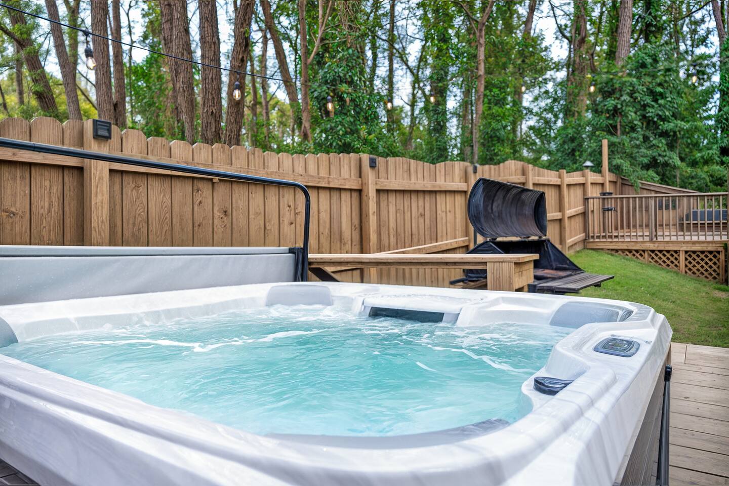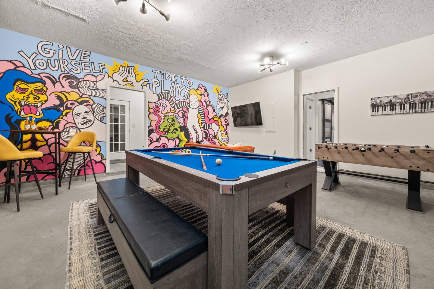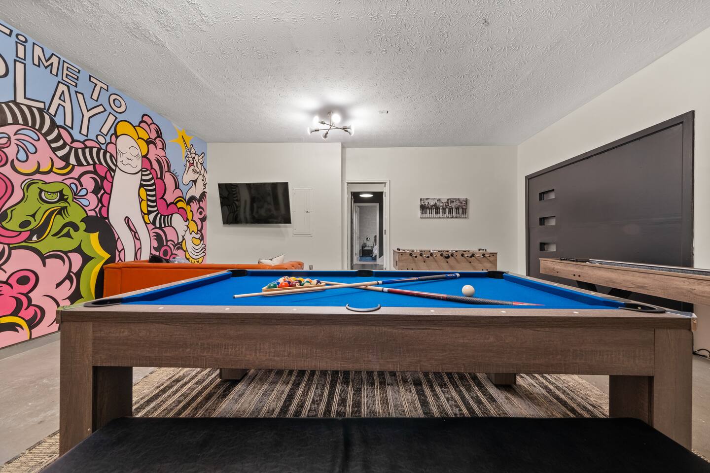 Welcome to the "ATL Patio Paradise"! Step inside this beautifully designed property located just 15min from downtown Atlanta. Our home has everything you need for an epic vacation: → Brand new AC system → Hot Tub - 5 Seats with Jets and Lights → Pool & Lounge Chairs → Home Theater Room - 120" Projector Screen → Game Room - Pool, Shuffleboard, Foosball, Arcade Games → Beautiful Insta Worthy Mural → Basketball Court → Fire Pit & Day Bed → Outdoor Seating and Dining → Fully Equipped Kitchen