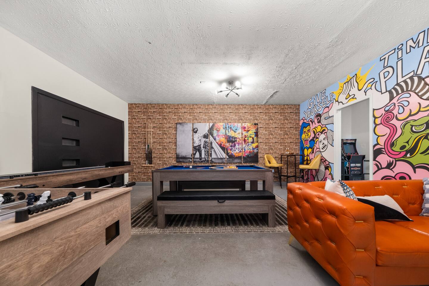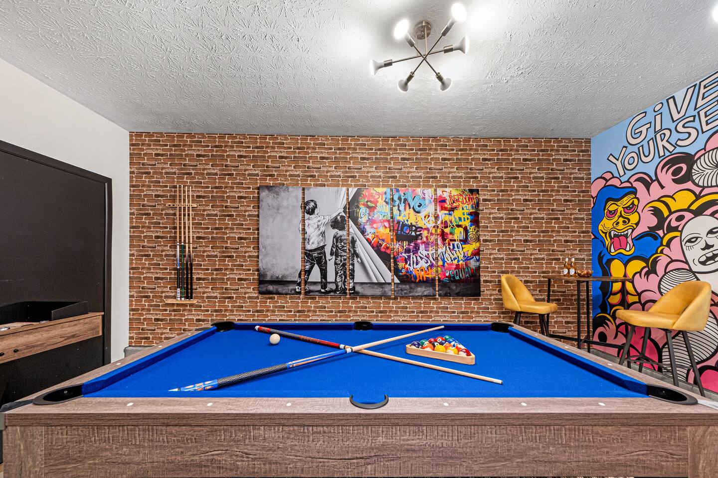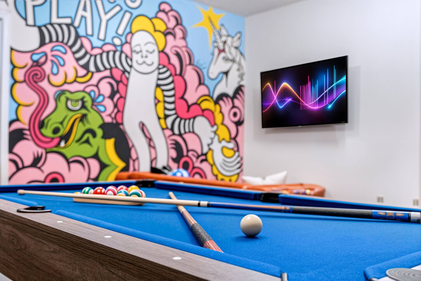 Welcome to the "ATL Patio Paradise"! Step inside this beautifully designed property located just 15min from downtown Atlanta. Our home has everything you need for an epic vacation: → Brand new AC system → Hot Tub - 5 Seats with Jets and Lights → Pool & Lounge Chairs → Home Theater Room - 120" Projector Screen → Game Room - Pool, Shuffleboard, Foosball, Arcade Games → Beautiful Insta Worthy Mural → Basketball Court → Fire Pit & Day Bed → Outdoor Seating and Dining → Fully Equipped Kitchen