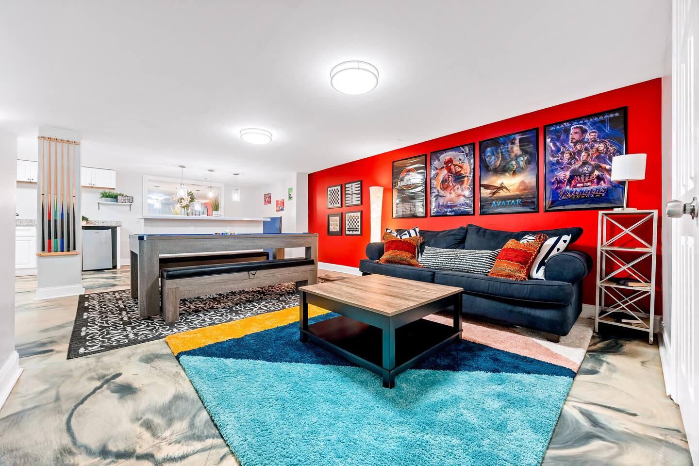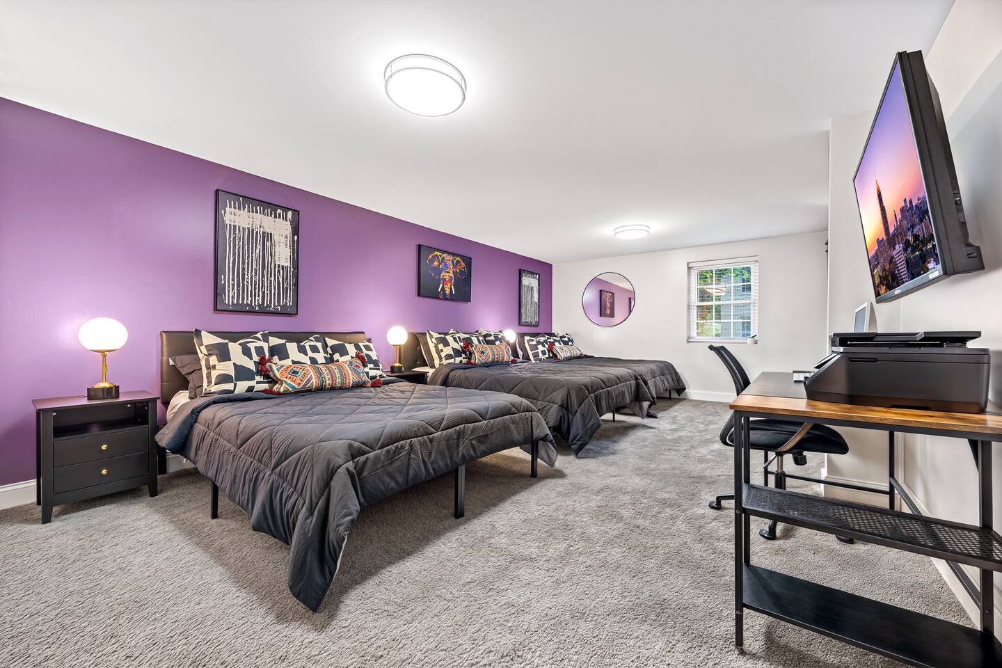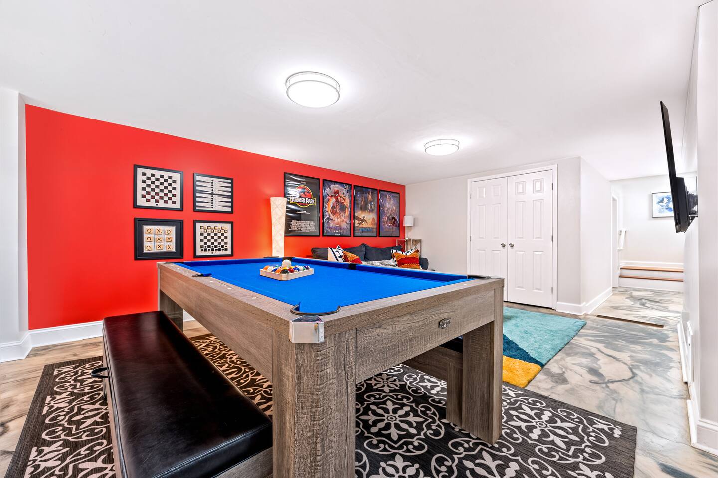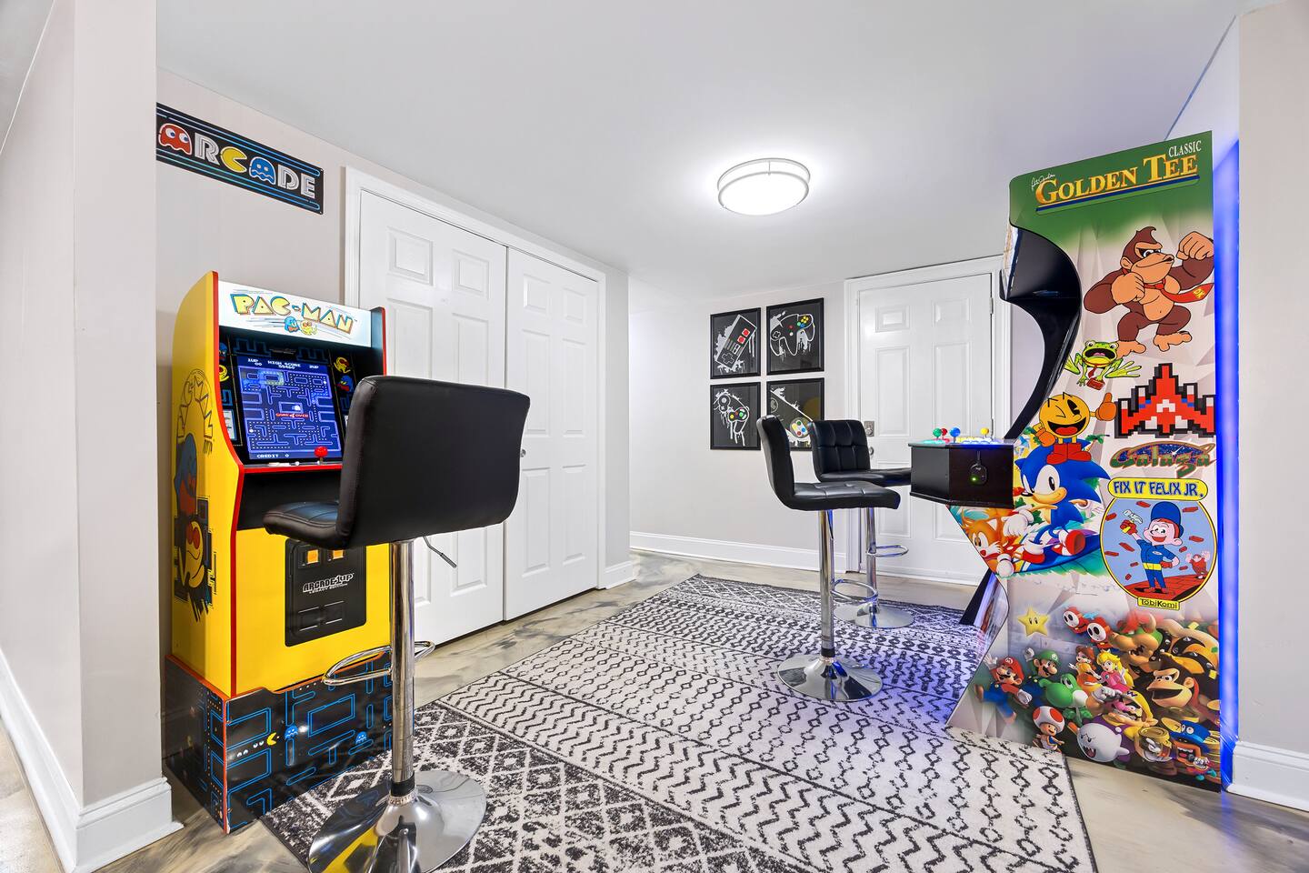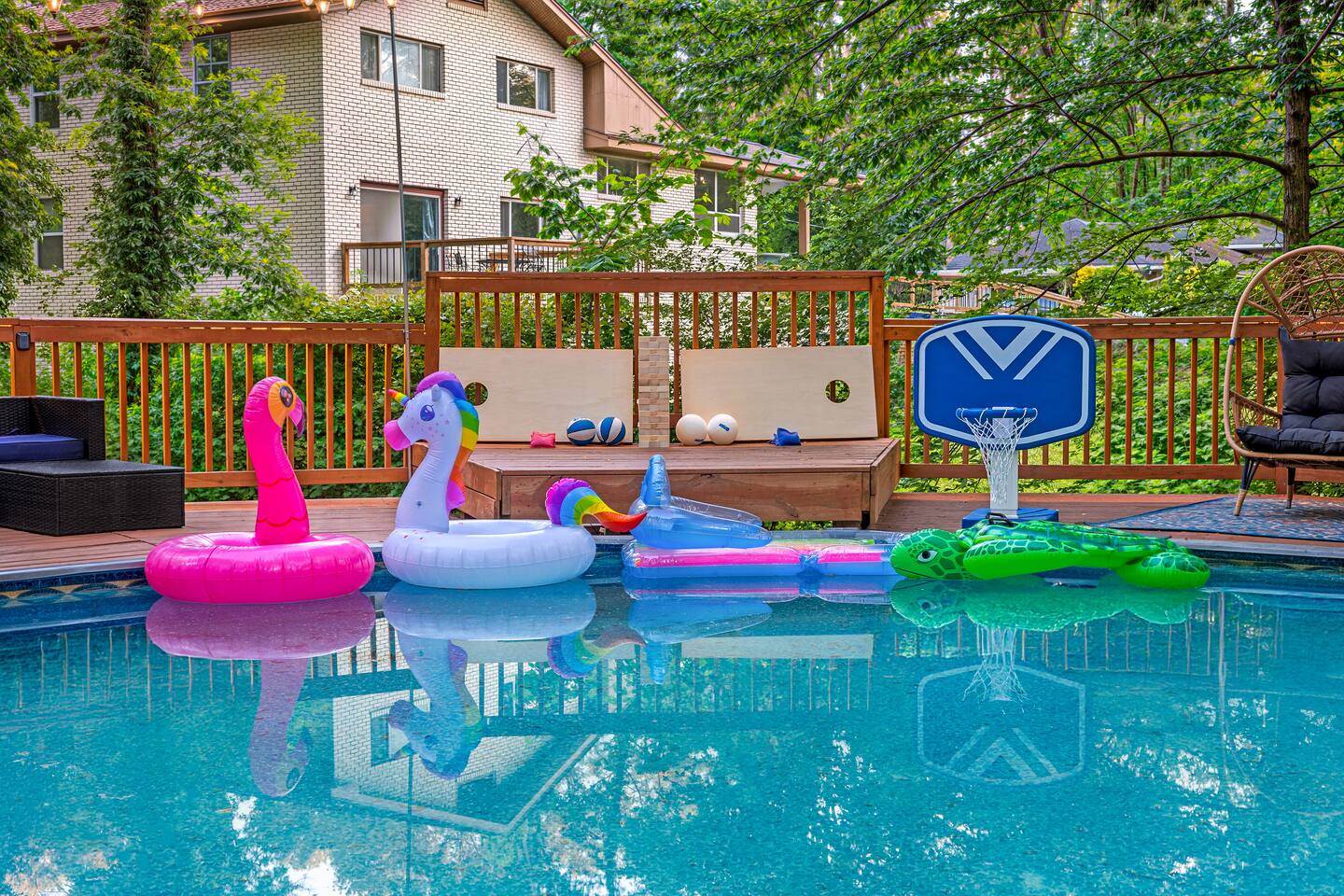 Rental Agreement and Pool & Spa Liability Waiver are required at this property. The Cascade Oasis is designed to show its guests the true meaning of high contemporary luxury. It will leave you in awe with its comfort & convenience levels, a considerable number of state-of-the-art, entertaining amenities, and breathtaking outdoor areas. It consists of two highly spacious indoor floors and a private outdoor area where you'll surely spend countless hours. This vast space can easily accommodate up to twenty guests who will be left with a unique experience that will stay with them long after returning home. ★ UPPER FLOOR ★ The open concept and spacious living area successfully combine the entertaining living/sitting room, inviting dining area, and fully equipped kitchen. Living Room Choose to quietly relax and rest from the vibrant city life while gazing at the tranquil outdoors through the modern floor-to-ceiling windows. Equipped with a 65” Smart TV and Samsung sound bar offering endless streaming options for your viewing pleasure. Kitchen State-of-the-art cooking amenities and spacious granite countertops will provide everything needed to cook a gourmet meal for the entire party. The kitchen is fully stocked with everything you will need for a family cookout. ✔ Microwave ✔ Air Fryer ✔ Oven & Stove ✔ Full Pot & Pan Set ✔ Dishwasher ✔ Keurig Coffee Maker ✔ Hot Water Kettle ✔ Refrigerator/Freezer with the Water & Ice Dispenser ✔ Ceramic & Plastic Dinnerware ✔ Kids Dinnerware & Silverware ✔ Spice set Dining Area Everyone will flock to the dining table when they sense the smells coming from the kitchen. Have them set the table so it's ready for your gourmet creations. Enjoy a drink at the kitchen counter with stylish stools. ✔ Dining Table with Seating for 8 ✔ Kitchen Bar with Seating for 3 ✔ Two (2) High Chairs Available __________________________________________________________________________________ ★ 5 BEDROOMS + 4.5 BATHROOMS ★ Bedrooms are where luxurious comforts can genuinely be felt and enjoyed. Large queen beds with plush mattresses will provide you with the best sleeping experience. The upper floor features three bedrooms, while another two can be found on the ground floor. Each floor has full bathrooms where you can unwind and have a warm shower/bath after an exciting day of sightseeing. There is another half-bath on each floor for maximum convenience. The green bedroom has a private full bathroom. All bathrooms are equipped with shampoo, conditioner, body wash and towels, so you don't have to worry about overpacking your own. Upper Floor ☆ Bedroom 1 (Yellow): Two Queen Beds + TV ☆ Bedroom 2 (Blue): Two Full Beds + TV ☆ Bedroom 3 (Green): Two Queen Beds + TV + Bathroom ☆ Full Bathroom near Living Room ☆ Full Private Bathroom (Green Room) ☆ Half Bathroom near Laundry Ground Floor ☆ Bedroom 4 (Purple): Three Queen Beds, Business Workstation + TV ☆ Bedroom 5 (Orange): One Queen Bed + TV + Bathroom ☆ Full Bathroom (Orange Room) ☆ Half Bathroom near Kitchenette Note: To access the orange bedroom, you must walk through the purple bedroom. They are connected via double barn doors. These rooms are perfect for siblings and friends, but they are less private than the upper bedrooms. __________________________________________________________________________________ ★ GROUND FLOOR ★ If the upper floor is all about relaxation and comfort, the ground floor is reserved for those unforgettable moments of fun with your loved ones. Here you'll find another open floor plan with many entertaining and comfy amenities for both children and adults. Game Room Our custom-built 4-player arcade machine is a centerpiece of the game room and a nostalgic dream come true. With over 20,000 games spanning Super Nintendo, Nintendo 64, PlayStation 1, and classic arcade systems, there's something for every generation of gamer. Whether you're reliving your favorite childhood titles or introducing the next generation to retro gaming, this all-in-one setup delivers endless entertainment and friendly competition. The game room also features a full-size pool table which isn’t just for billiards—it's a versatile centerpiece for fun and connection. With a custom conversion top, it easily transforms into a ping pong table for fast-paced rallies or a spacious dining and board game surface perfect for group meals, game nights, or casual hangs. Whether you're sharpening your aim or setting up for dinner, this table adapts to fit the moment. ✔ Custom 4-player Arcade Machine w/ 20,000+ games ✔ Pac-Man Arcade Machine ✔ Pool Table / Ping Pong Table ✔ 70” Smart TV with Samsung Sound Bar Kitchenette Sit at the large central island until it's your turn to play. You can also prepare small meals and snacks in the lovely kitchenette. __________________________________________________________________________________ ★ OUTDOOR AREA ★ Slide open the living room doors and step outside to the completely private outdoor oasis. Cool off in the swimming pool, work on your tan while relaxing on comfy sun lounges, chill in the hot tub, or prepare a delicious BBQ for the entire family. ✔ Swimming Pool (4ft) with 6 Sun Lounges ✔ Luxury 8-person Hot Tub ✔ Upstairs Patio with 8-person Seating ✔ Downstairs Dining 3-person Seating ✔ Beautiful Ambient Lighting ✔ BBQ Grill + Utensils ✔ Water Basketball ✔ Corn Hole ✔ Giant Jenga ✔ Connect 4 ✔ Pool Floaties __________________________________________________________________________________ ★ ADDITIONAL INFORMATION ★ Parking Parking is accessible in the driveway and can accommodate 4+ cars with an additional 2 in the covered garage. Please note, the driveway is quite steep. Safety & Automation: Our property has been outfitted with the following safety features for our guests: • Schlage Smart-Lock • Ring doorbell and Vivint camera (above garage) • Vivint security system • Minut noise and smoke dete