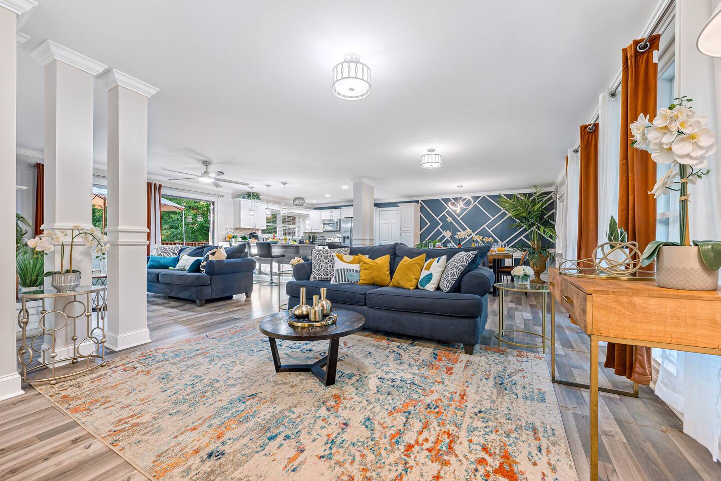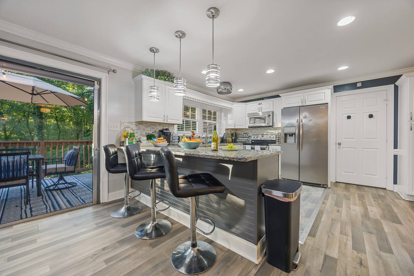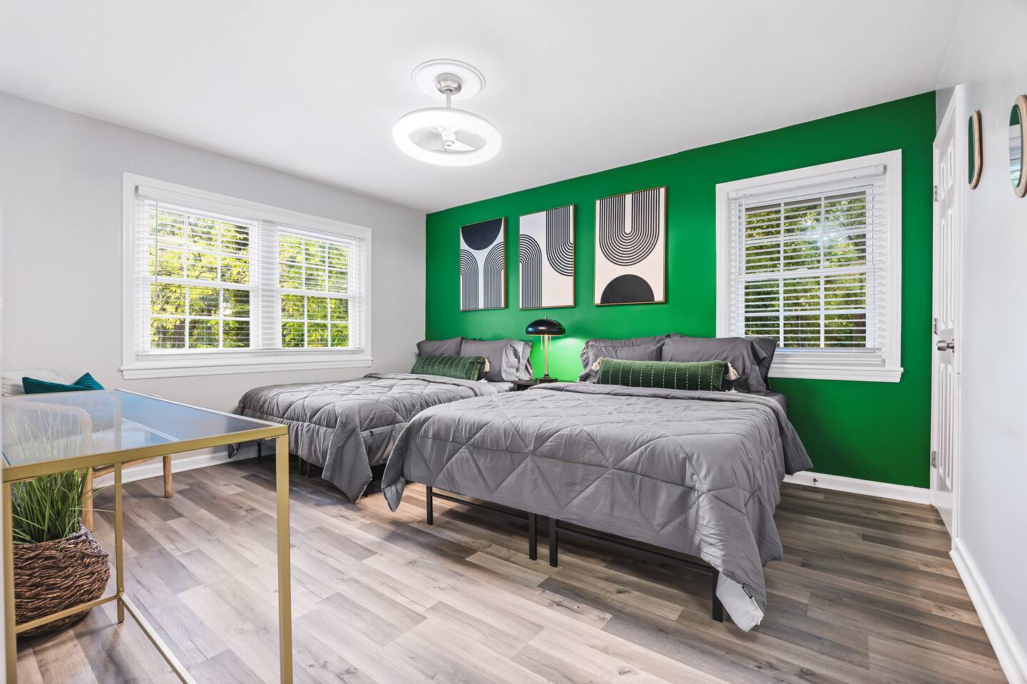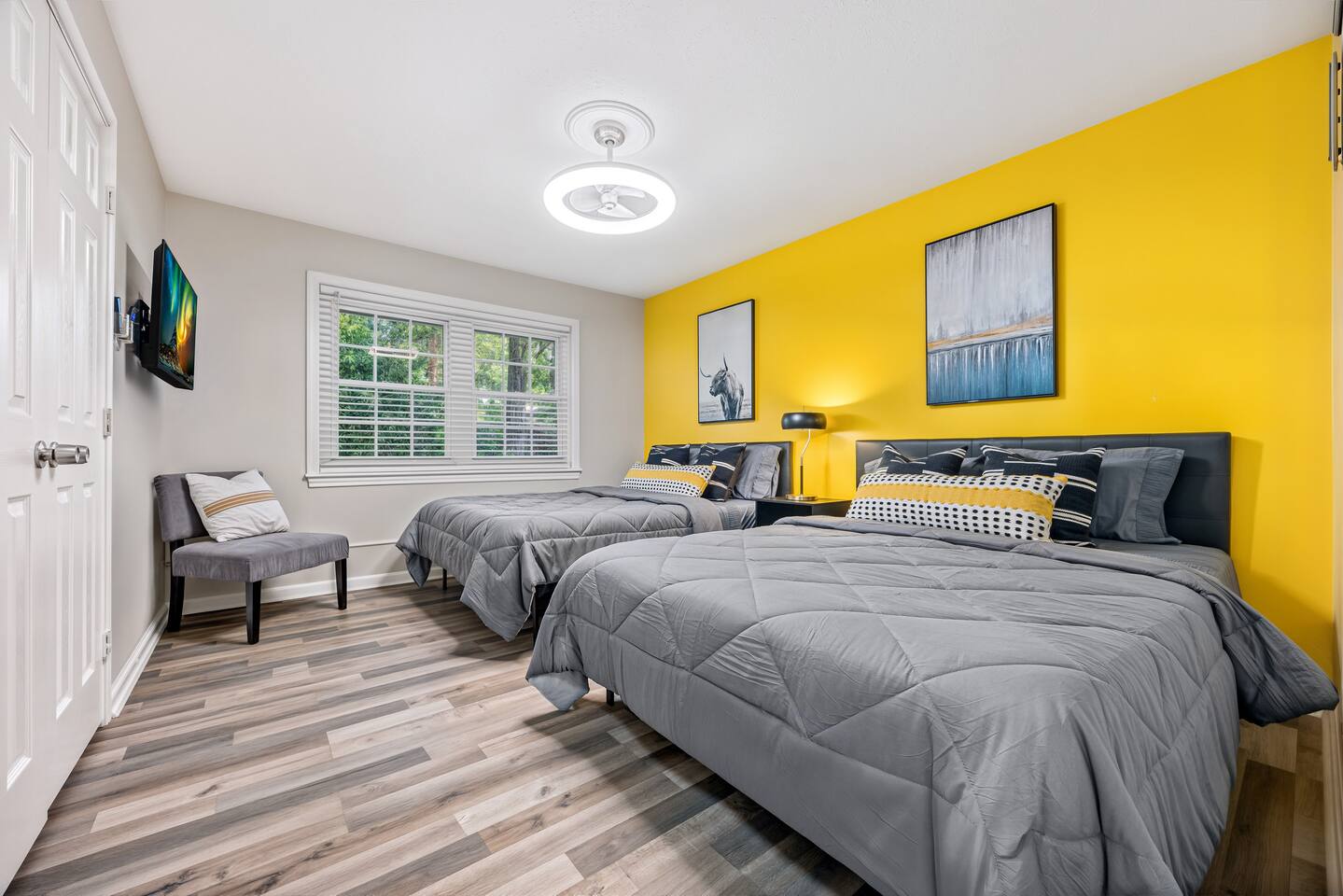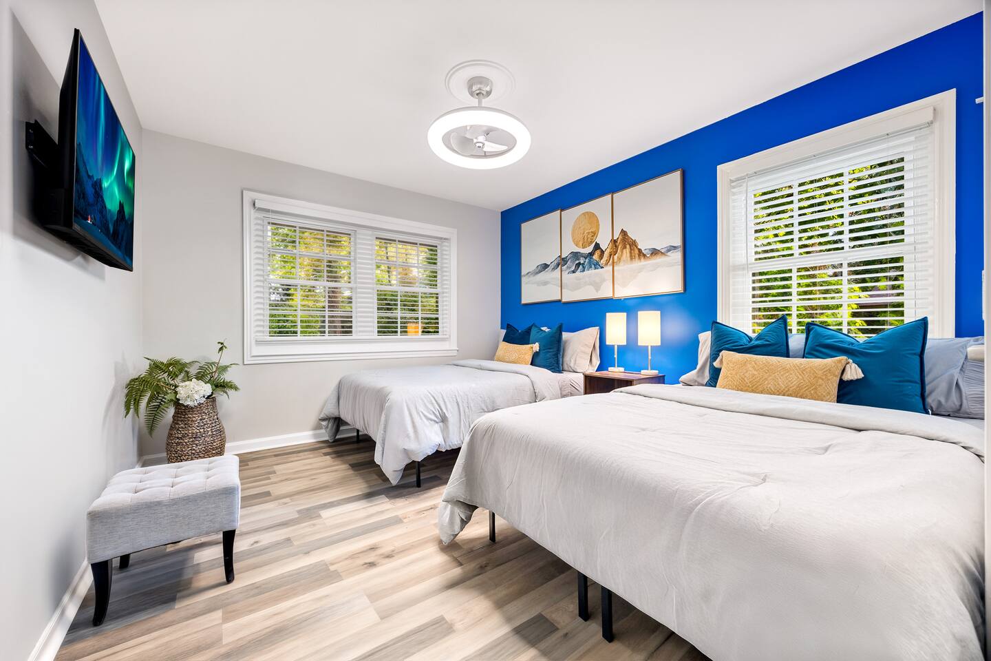 Rental Agreement and Pool & Spa Liability Waiver are required at this property. The Cascade Oasis is designed to show its guests the true meaning of high contemporary luxury. It will leave you in awe with its comfort & convenience levels, a considerable number of state-of-the-art, entertaining amenities, and breathtaking outdoor areas. It consists of two highly spacious indoor floors and a private outdoor area where you'll surely spend countless hours. This vast space can easily accommodate up to twenty guests who will be left with a unique experience that will stay with them long after returning home. ★ UPPER FLOOR ★ The open concept and spacious living area successfully combine the entertaining living/sitting room, inviting dining area, and fully equipped kitchen. Living Room Choose to quietly relax and rest from the vibrant city life while gazing at the tranquil outdoors through the modern floor-to-ceiling windows. Equipped with a 65” Smart TV and Samsung sound bar offering endless streaming options for your viewing pleasure. Kitchen State-of-the-art cooking amenities and spacious granite countertops will provide everything needed to cook a gourmet meal for the entire party. The kitchen is fully stocked with everything you will need for a family cookout. ✔ Microwave ✔ Air Fryer ✔ Oven & Stove ✔ Full Pot & Pan Set ✔ Dishwasher ✔ Keurig Coffee Maker ✔ Hot Water Kettle ✔ Refrigerator/Freezer with the Water & Ice Dispenser ✔ Ceramic & Plastic Dinnerware ✔ Kids Dinnerware & Silverware ✔ Spice set Dining Area Everyone will flock to the dining table when they sense the smells coming from the kitchen. Have them set the table so it's ready for your gourmet creations. Enjoy a drink at the kitchen counter with stylish stools. ✔ Dining Table with Seating for 8 ✔ Kitchen Bar with Seating for 3 ✔ Two (2) High Chairs Available __________________________________________________________________________________ ★ 5 BEDROOMS + 4.5 BATHROOMS ★ Bedrooms are where luxurious comforts can genuinely be felt and enjoyed. Large queen beds with plush mattresses will provide you with the best sleeping experience. The upper floor features three bedrooms, while another two can be found on the ground floor. Each floor has full bathrooms where you can unwind and have a warm shower/bath after an exciting day of sightseeing. There is another half-bath on each floor for maximum convenience. The green bedroom has a private full bathroom. All bathrooms are equipped with shampoo, conditioner, body wash and towels, so you don't have to worry about overpacking your own. Upper Floor ☆ Bedroom 1 (Yellow): Two Queen Beds + TV ☆ Bedroom 2 (Blue): Two Full Beds + TV ☆ Bedroom 3 (Green): Two Queen Beds + TV + Bathroom ☆ Full Bathroom near Living Room ☆ Full Private Bathroom (Green Room) ☆ Half Bathroom near Laundry Ground Floor ☆ Bedroom 4 (Purple): Three Queen Beds, Business Workstation + TV ☆ Bedroom 5 (Orange): One Queen Bed + TV + Bathroom ☆ Full Bathroom (Orange Room) ☆ Half Bathroom near Kitchenette Note: To access the orange bedroom, you must walk through the purple bedroom. They are connected via double barn doors. These rooms are perfect for siblings and friends, but they are less private than the upper bedrooms. __________________________________________________________________________________ ★ GROUND FLOOR ★ If the upper floor is all about relaxation and comfort, the ground floor is reserved for those unforgettable moments of fun with your loved ones. Here you'll find another open floor plan with many entertaining and comfy amenities for both children and adults. Game Room Our custom-built 4-player arcade machine is a centerpiece of the game room and a nostalgic dream come true. With over 20,000 games spanning Super Nintendo, Nintendo 64, PlayStation 1, and classic arcade systems, there's something for every generation of gamer. Whether you're reliving your favorite childhood titles or introducing the next generation to retro gaming, this all-in-one setup delivers endless entertainment and friendly competition. The game room also features a full-size pool table which isn’t just for billiards—it's a versatile centerpiece for fun and connection. With a custom conversion top, it easily transforms into a ping pong table for fast-paced rallies or a spacious dining and board game surface perfect for group meals, game nights, or casual hangs. Whether you're sharpening your aim or setting up for dinner, this table adapts to fit the moment. ✔ Custom 4-player Arcade Machine w/ 20,000+ games ✔ Pac-Man Arcade Machine ✔ Pool Table / Ping Pong Table ✔ 70” Smart TV with Samsung Sound Bar Kitchenette Sit at the large central island until it's your turn to play. You can also prepare small meals and snacks in the lovely kitchenette. __________________________________________________________________________________ ★ OUTDOOR AREA ★ Slide open the living room doors and step outside to the completely private outdoor oasis. Cool off in the swimming pool, work on your tan while relaxing on comfy sun lounges, chill in the hot tub, or prepare a delicious BBQ for the entire family. ✔ Swimming Pool (4ft) with 6 Sun Lounges ✔ Luxury 8-person Hot Tub ✔ Upstairs Patio with 8-person Seating ✔ Downstairs Dining 3-person Seating ✔ Beautiful Ambient Lighting ✔ BBQ Grill + Utensils ✔ Water Basketball ✔ Corn Hole ✔ Giant Jenga ✔ Connect 4 ✔ Pool Floaties __________________________________________________________________________________ ★ ADDITIONAL INFORMATION ★ Parking Parking is accessible in the driveway and can accommodate 4+ cars with an additional 2 in the covered garage. Please note, the driveway is quite steep. Safety & Automation: Our property has been outfitted with the following safety features for our guests: • Schlage Smart-Lock • Ring doorbell and Vivint camera (above garage) • Vivint security system • Minut noise and smoke dete